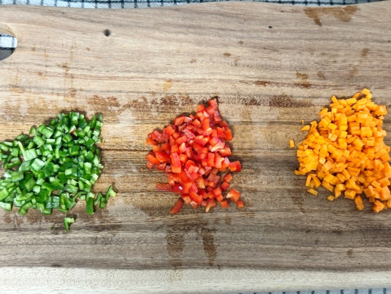 가을비가 촉촉이 내리는 주말입니다. 주말 점심으로 간단하고 맛있는 한 끼! 닭 가슴살을 넣고 볶음밥을 만들었어요. 냉장고에 남아있던 야채들도 같이 넣고 한 그릇에 맛을 담아낼 수 있는 볶음밥이죠. 단백질 가득한 닭 가슴살을 활용해서 아이들과 같이 먹기에도 좋은 고슬고슬하게 볶아낸 볶음밥이랍니다. 세 가지 야채로 색감을 살려서 볶은 닭 가슴살 야채 볶음밥을 만들어 보도록 할게요 :)