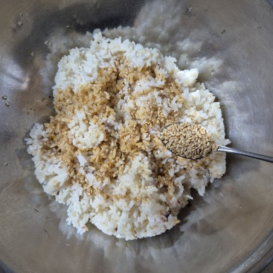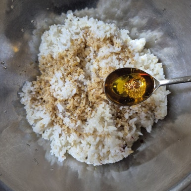 밥 1공기, 간장 1큰술, 참기름 1큰술, 통깨 1작은술