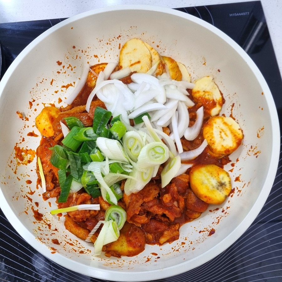 어느정도 볶아지면 양파, 대파 넣어주세요