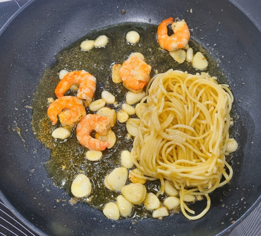 새우, 파스타면 넣고 볶아주세요