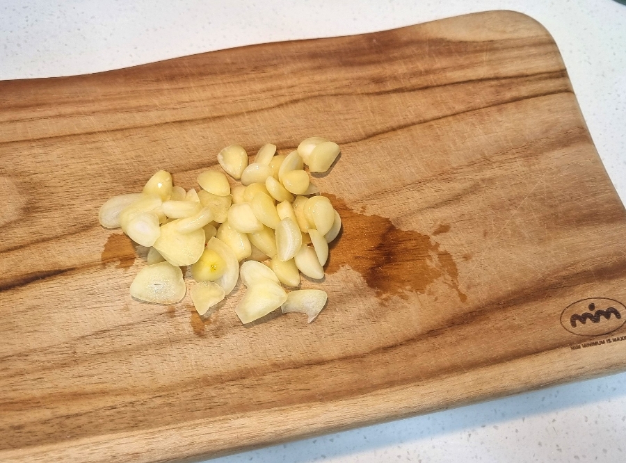 마늘을 먹기 좋은 크기로