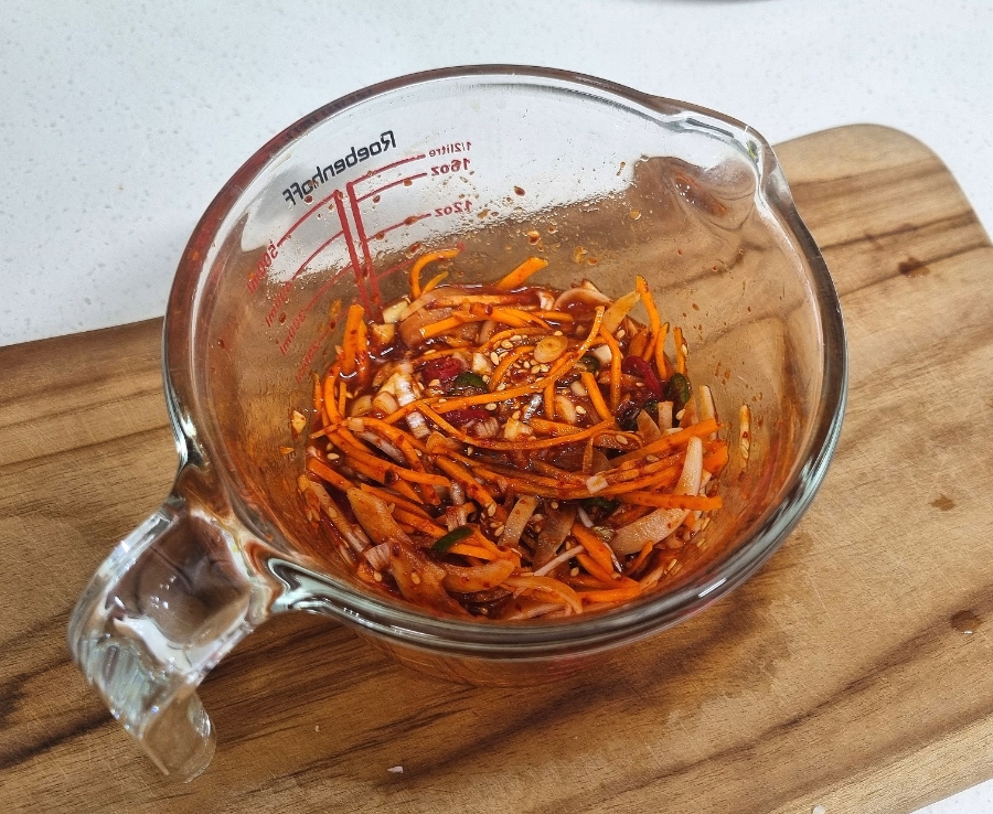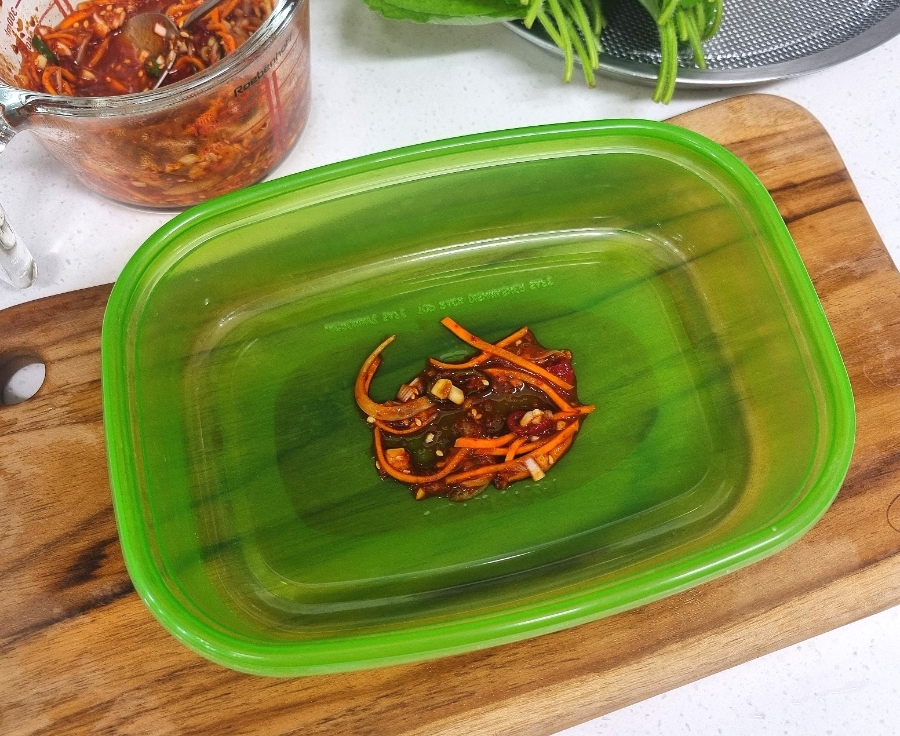 용기 바닥에 양념 살짝 먼저 깔아주세요