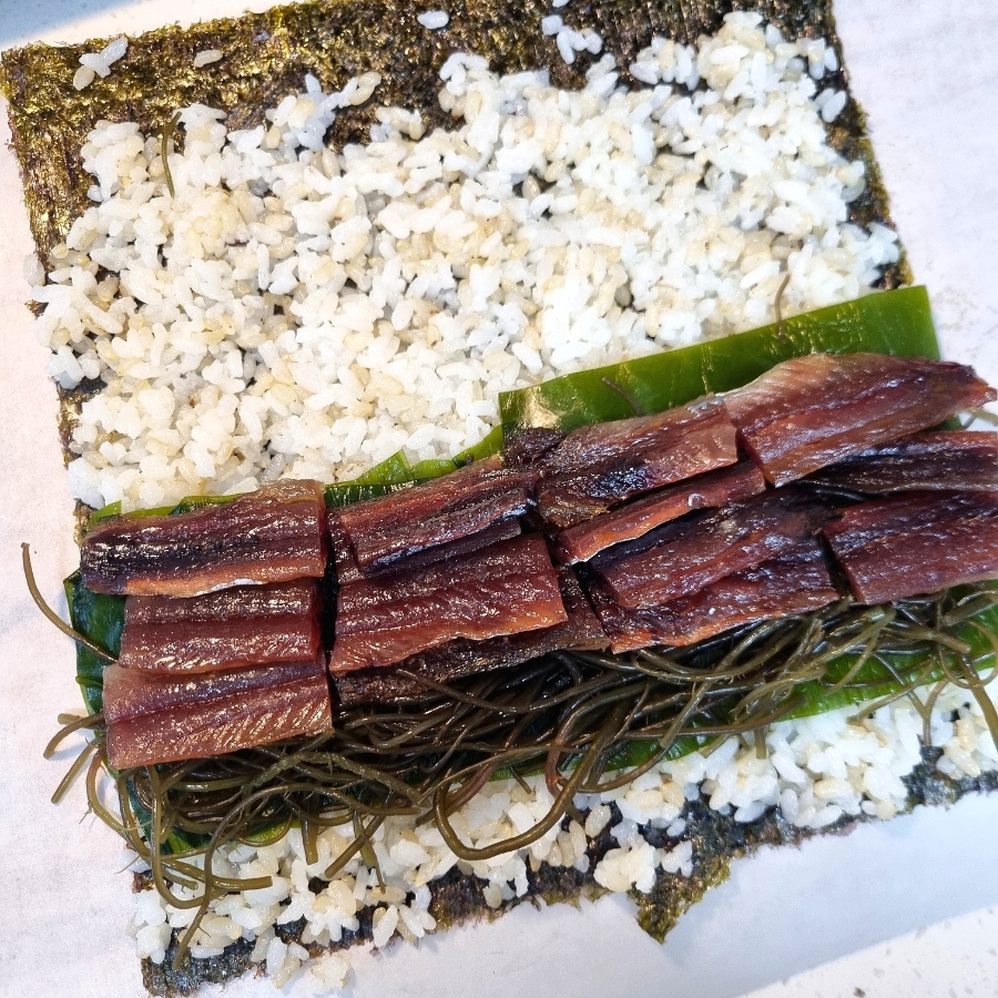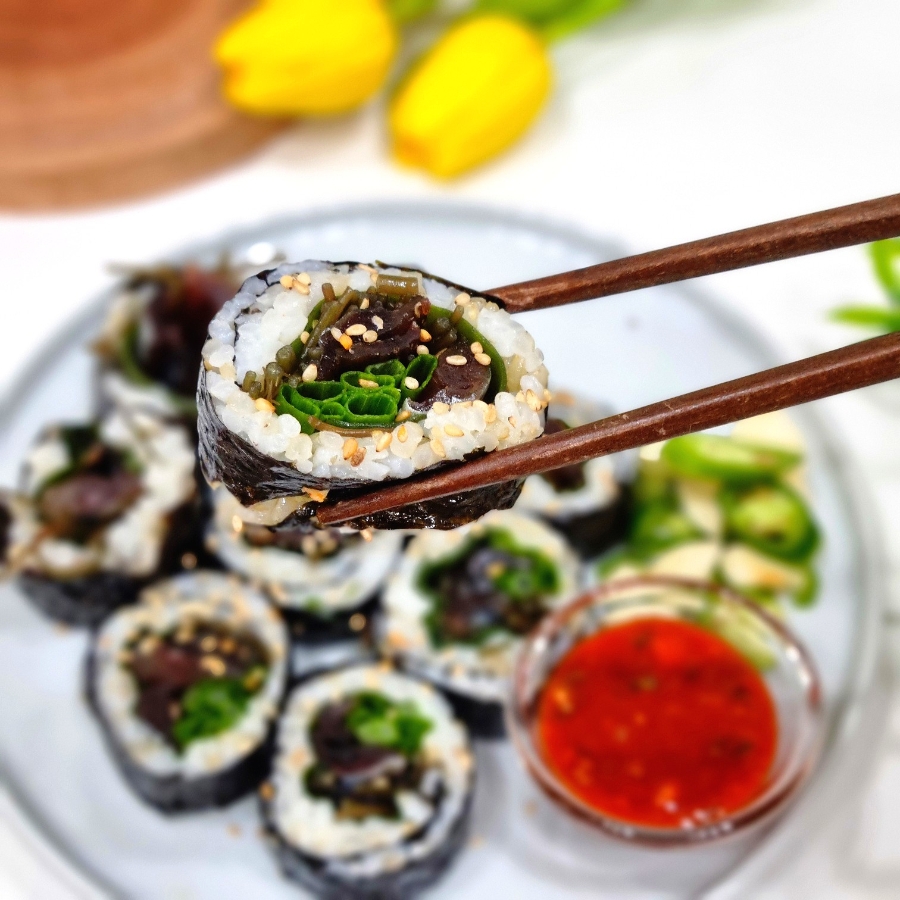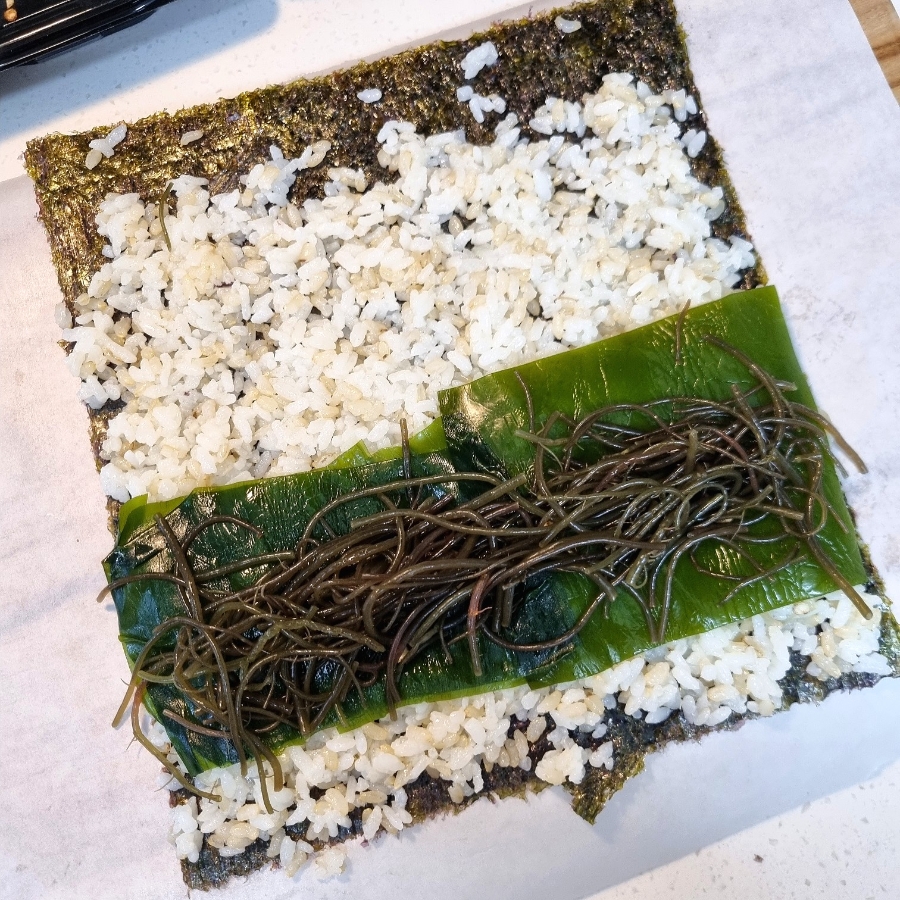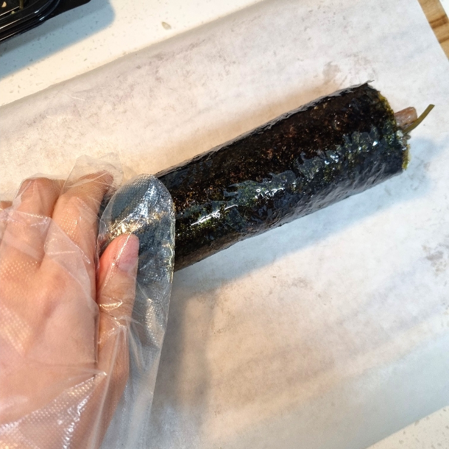 꾹꾹 눌러가며 김밥을 돌돌 말아주세요