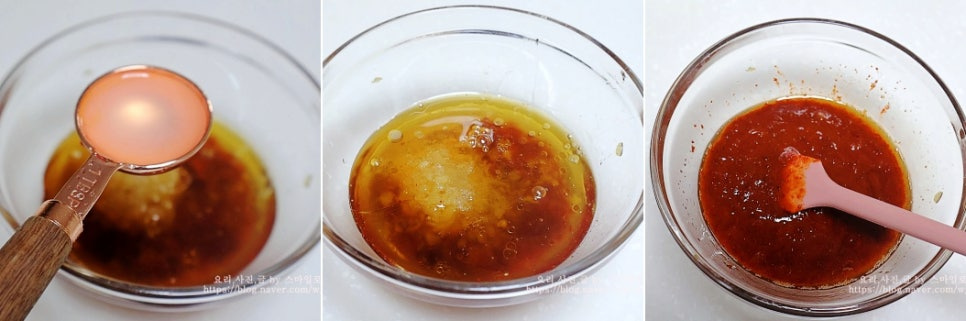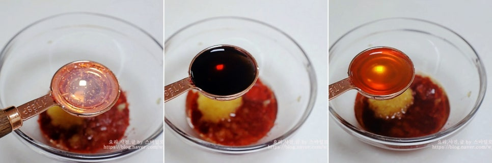 물엿 2큰술과 진간장 1큰술, 참치 액 1큰술을 넣고