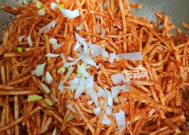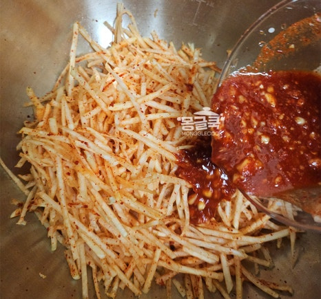 미리 만들어둔 양념장을 넣고 가볍게 무쳐주세요.