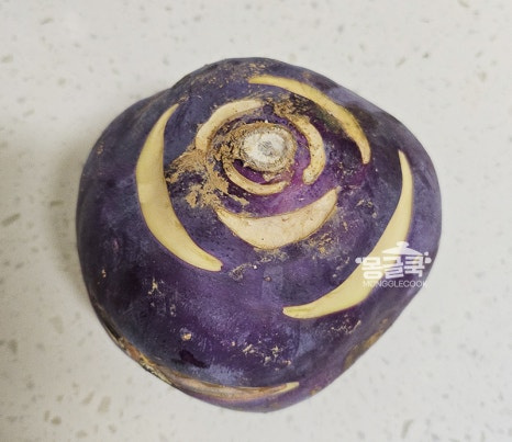 콜라비는 위아래 지저분한 부분을 먼저 잘라낸 뒤 껍질을 제거해 주세요.