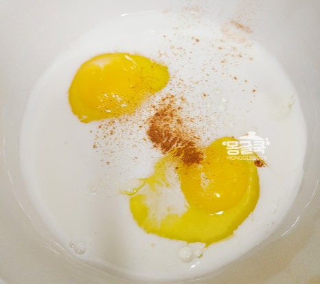 바닐라 에센스 한두 방울을 계란물에 넣어보세요.