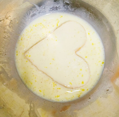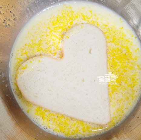 식빵을 앞뒤로 뒤집어가며 계란물을 충분히 흡수시켜 주세요.