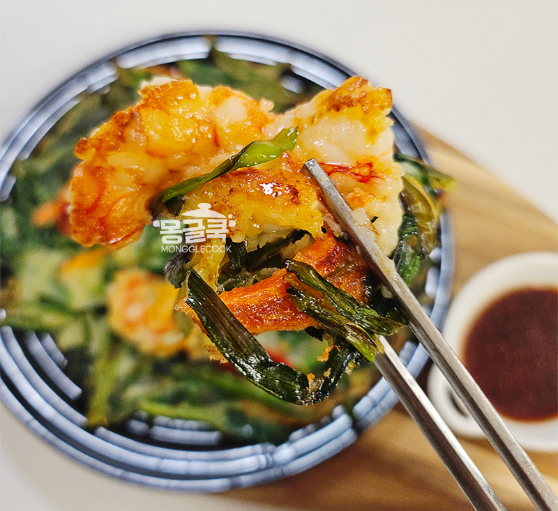 부추전 레시피 : 냉동새우 넣고 부치는 바삭한 새우 부추전 만들기