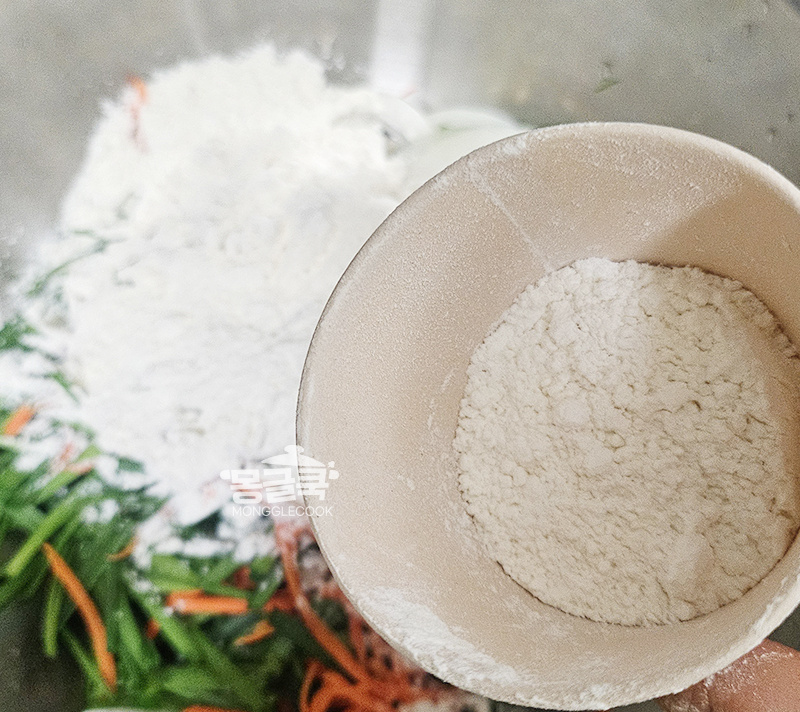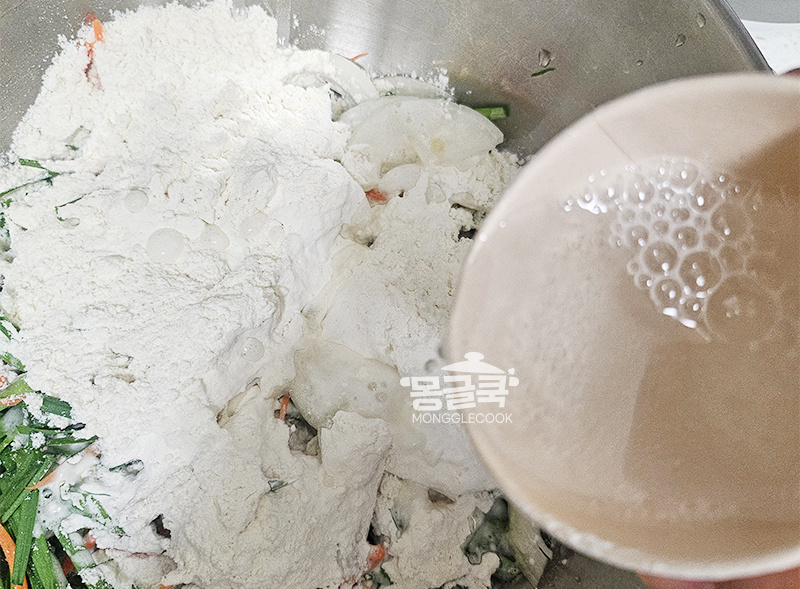 반죽보다 부추가 훨씬 많아 보이게!