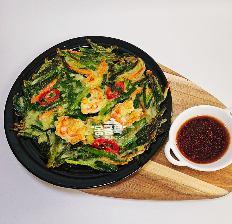 겉은 바삭, 속은 향긋한 부추 향이 살아 있는 새우 부추전.