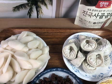 떡(400g),만두(400g),물(500ml),다시다(1스푼)