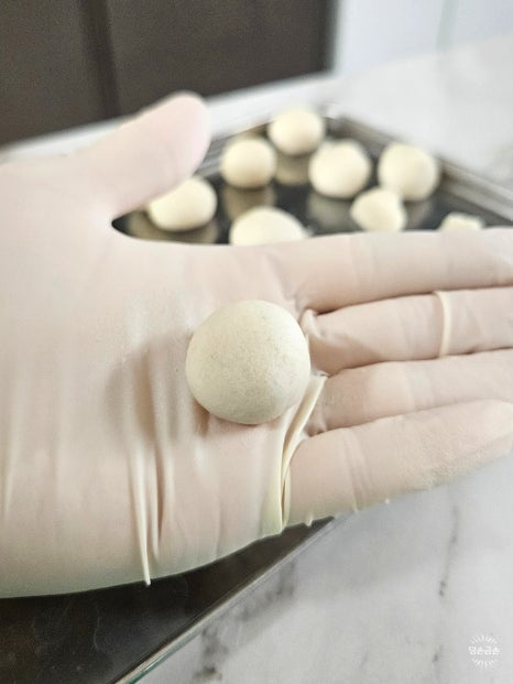 처음에 찹쌀가루 70g으로 새알심을 만들었는데 16개밖에 안 나오더라고요.