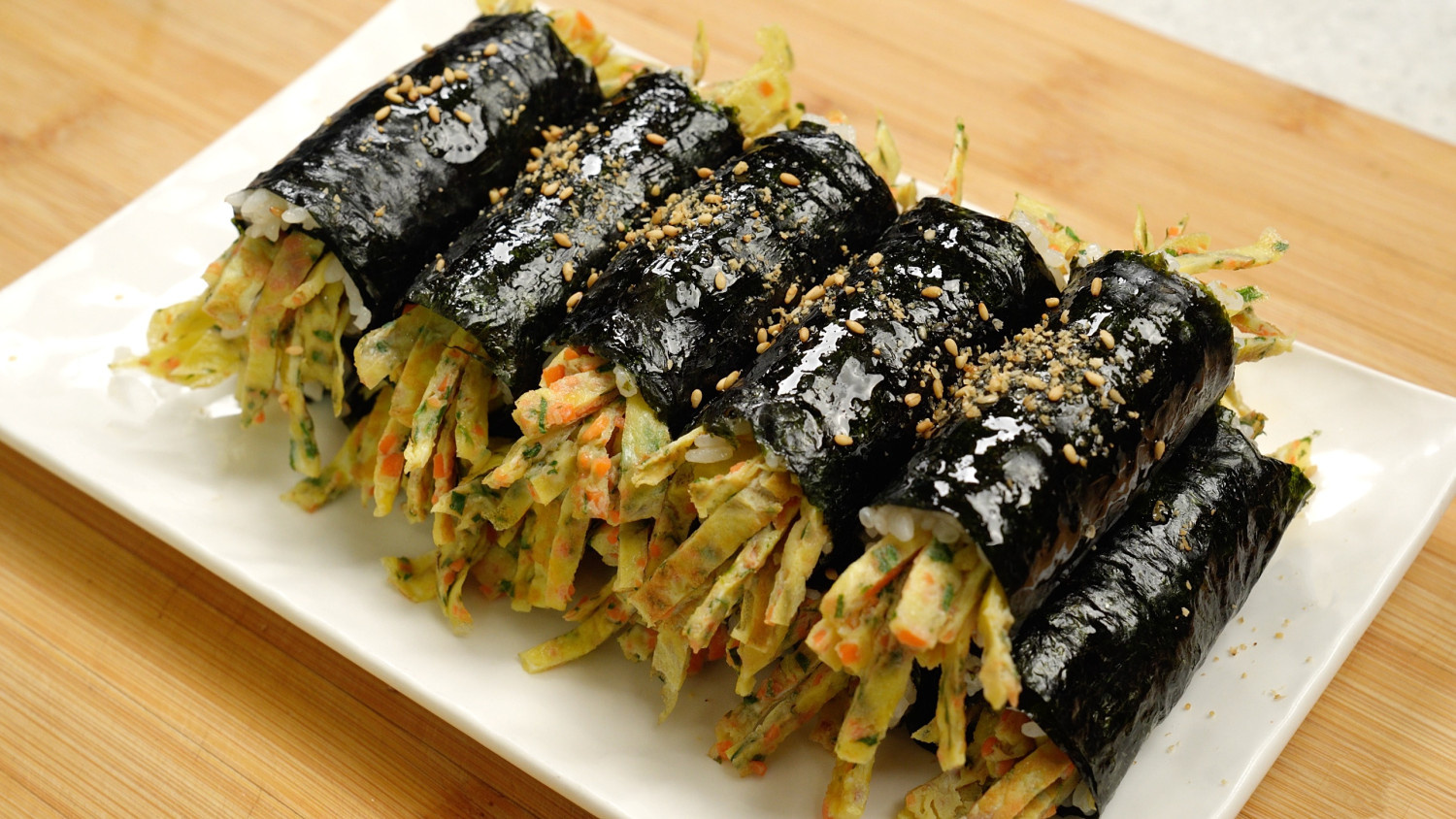 안녕하세요 새해가 밝았네요 새해에는 계획하신 일들 하나하나 잘 이루어지시길 바라요 예전에는 김밥을 꼭 재료를 다 갖춘 다음에 만들어야 맛있는 줄 알았는데요 요즘은 집에 있는 재료부터 꺼내서 이렇게 만들어먹어요 냉장고에 남아 있던 야채들만으로도 김밥 !! 충분히 맛있더라고요 부담 없이 한 끼 해결하기 너무 좋답니다~!