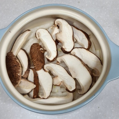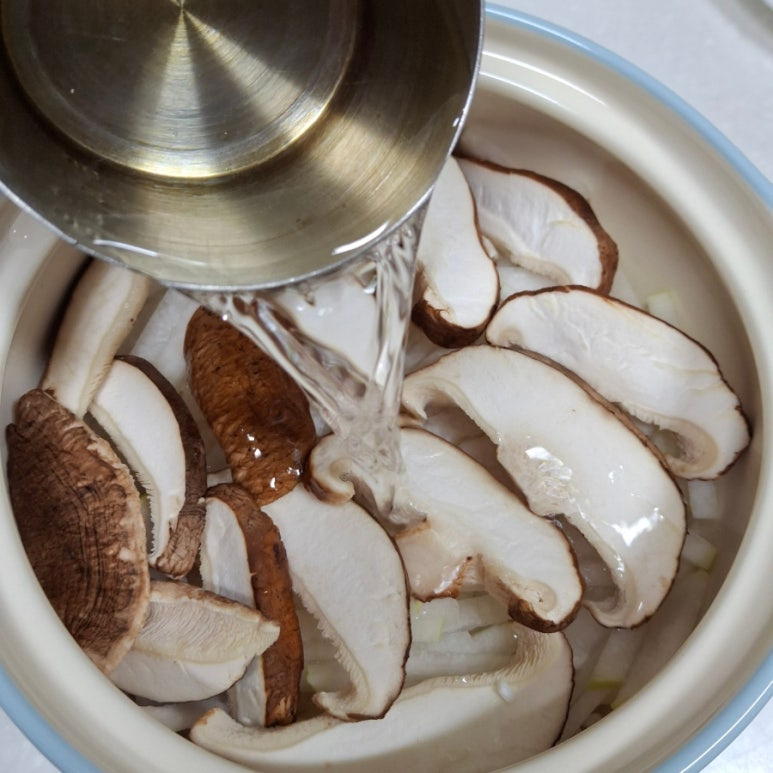 표고버섯은 밑동을 제거하고 채 썰어줍니다