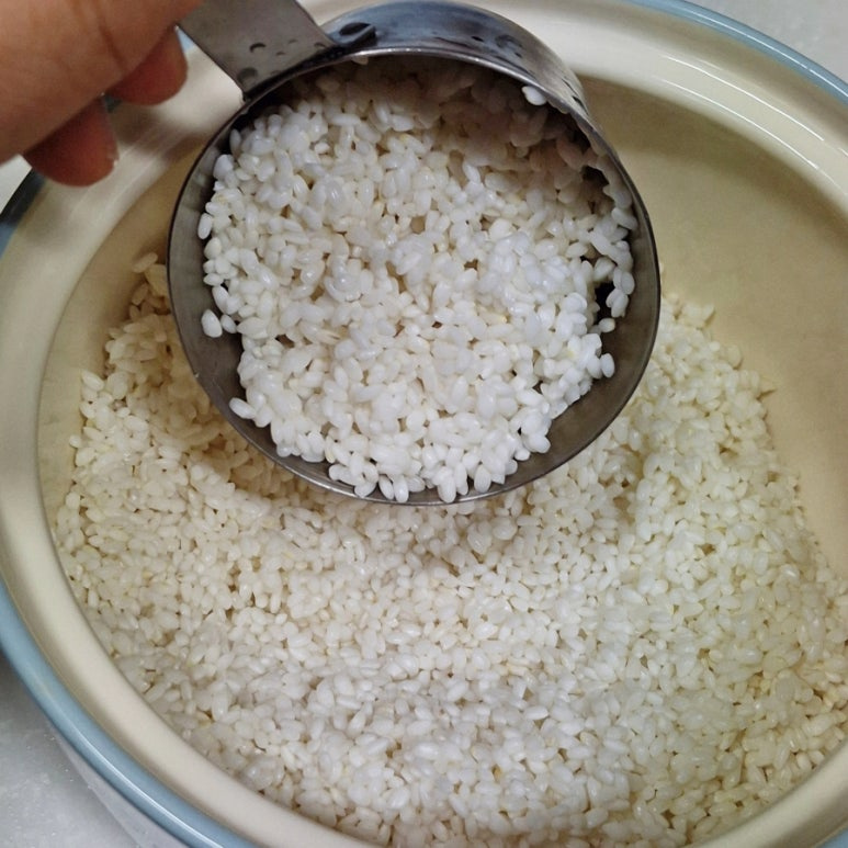 생쌀 1.4컵은 불린 후에 약 2컵이 됩니다.