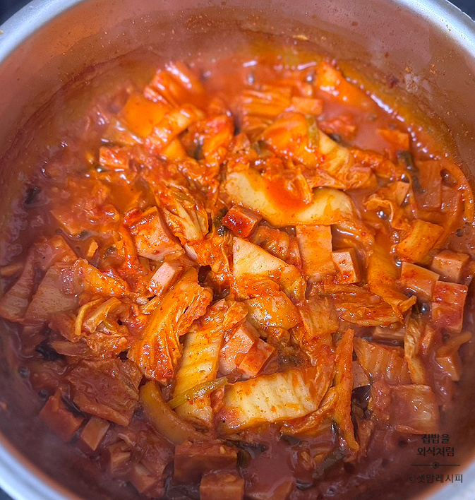 김치, 소시지 넣고 달달 볶아주다가