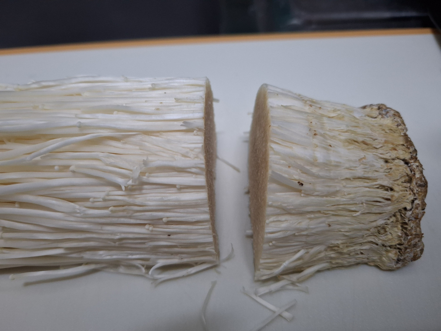 팽이버섯은 밑둥을 잘라내고 말기 좋게