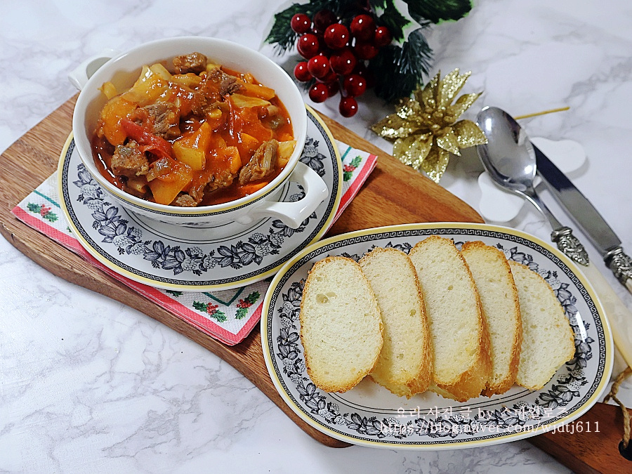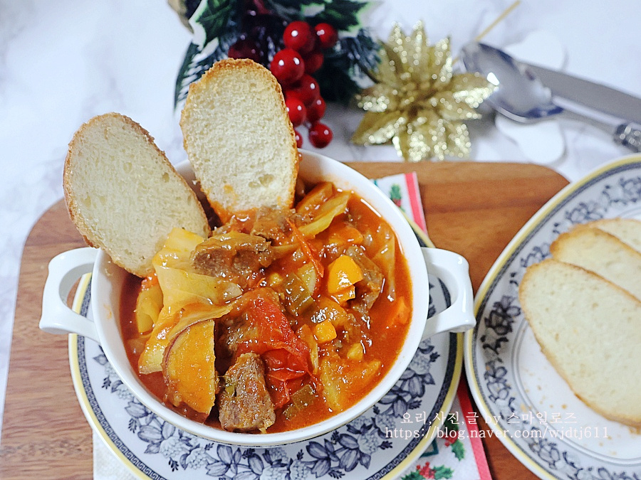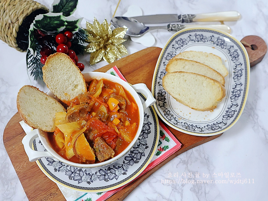 바게트 빵 위에 올려 먹으면 부드럽고 맛있는 토마토야채스프