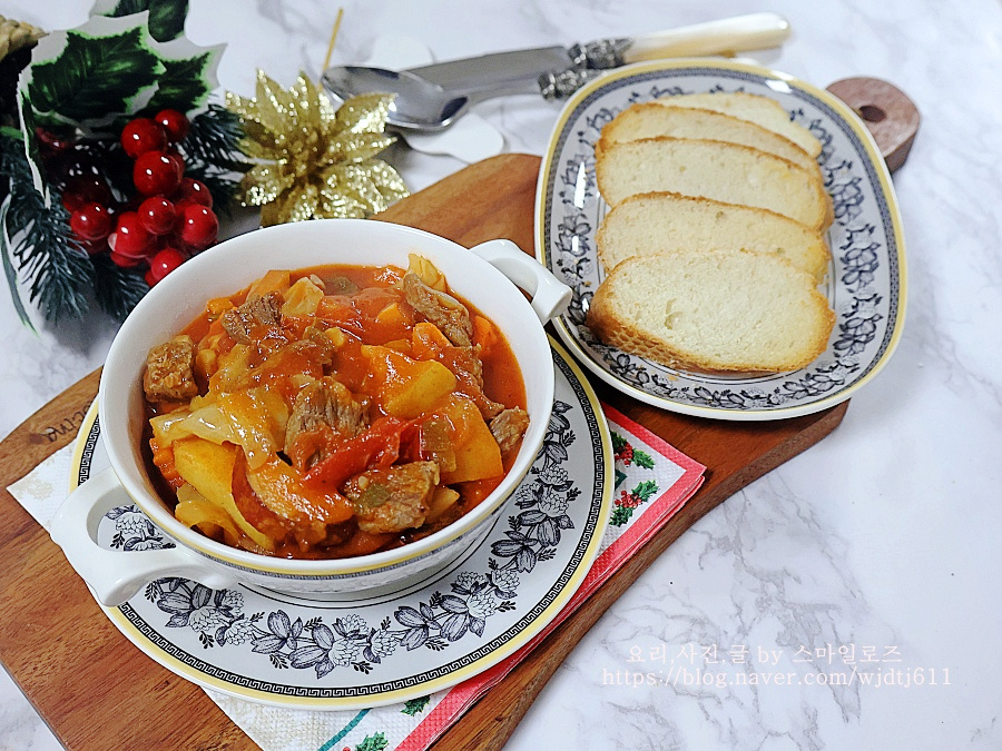 채끝살도 넣고 토마토와 각종 야채 홀토마토가 없어
