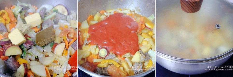 마지막에 보면 야채에서 수분이 많이 빠져나온 것 보이시지요
