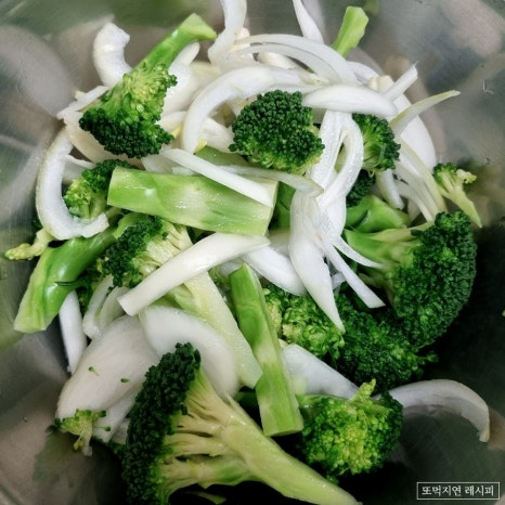 여기에 브로콜리와 양파 넣고