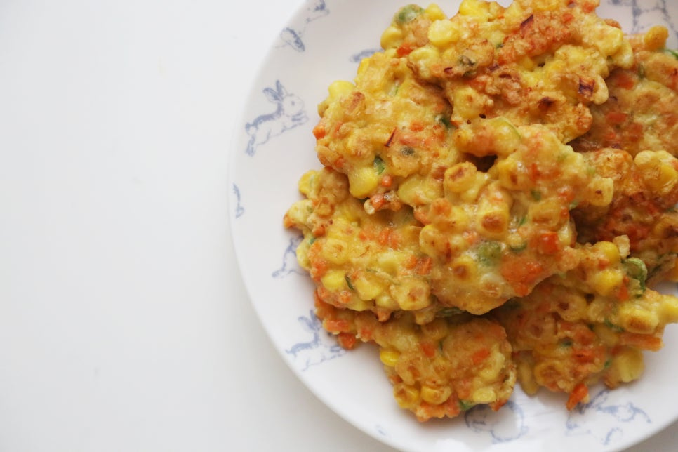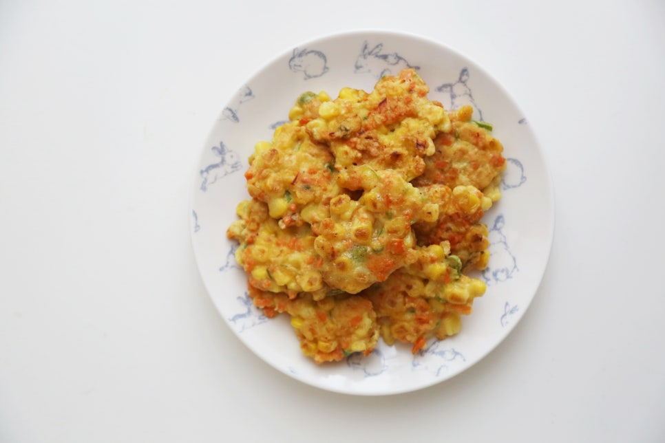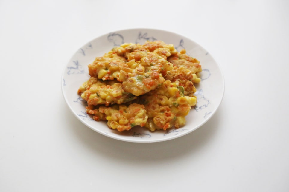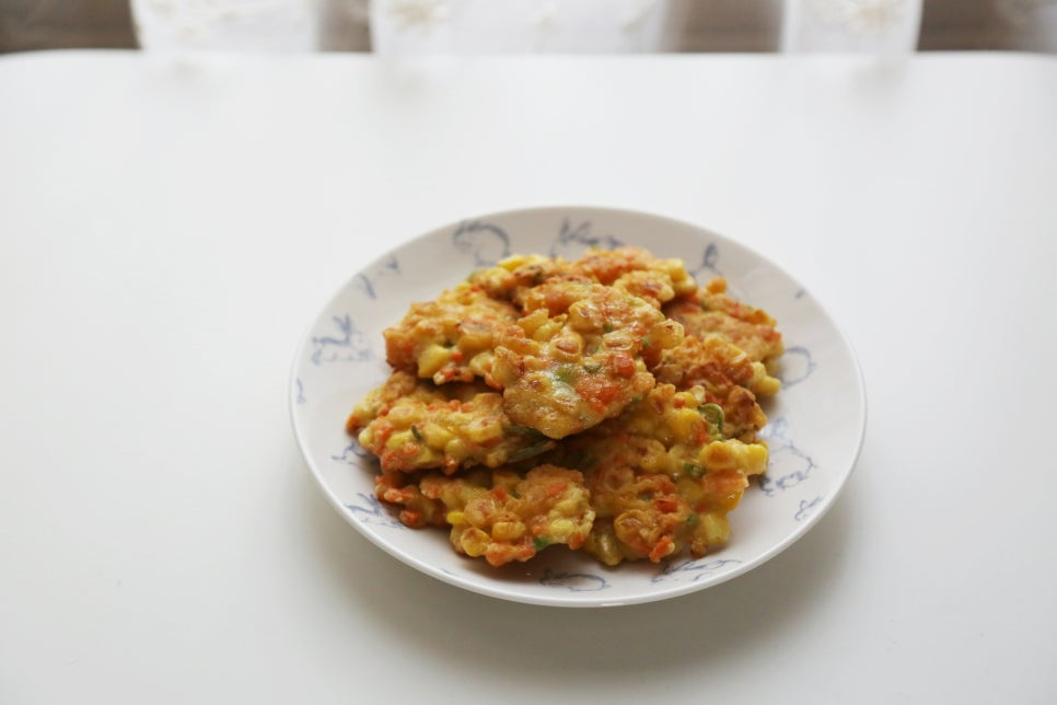 옥수수캔 350g, 당근 1/2개, 청양고추 3개, 부침가루 100ml, 계란 2개, 백간장 0.5T