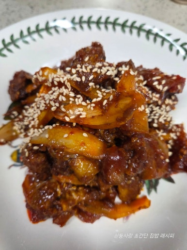 예전에는 돼지고기에 미리 양념을 넣고 숙성 (전날 미리 준비) 시켰다가 볶아주는 방법을 했었는데 국물이 많이 생겨서 지금은 오늘 소개해 드리는 방법으로 요리합니다.