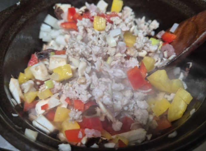 양파,표고버섯, 파프리카는 0.5cm 정사각형 느낌으로 썰어요.