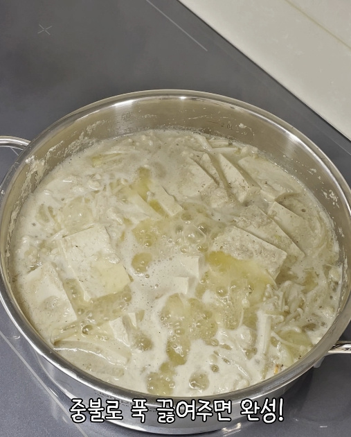 이제 센 불에서 한 번 끓여준 뒤 보글보글 끓기 시작하면 중약불로 낮춰 재료가 어우러지도록 잠시 더 끓여주기만 하면 완성입니다.