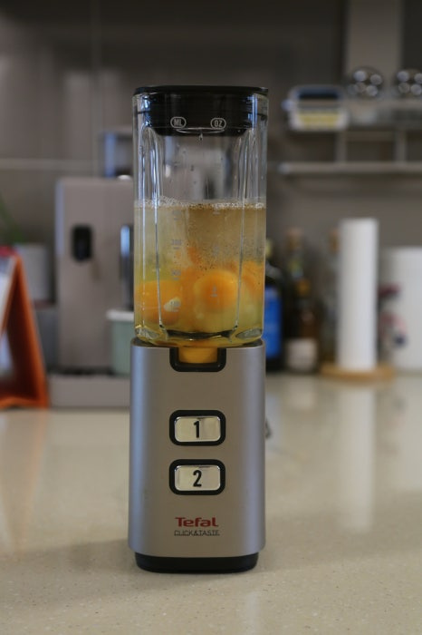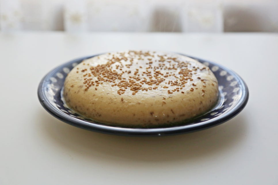 참기름 1스푼, 믹서기에 갈은 계란 4개