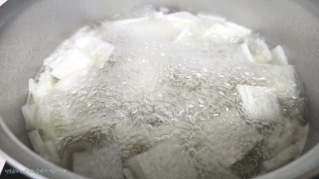 한소큼 끓여서 무가 익으면