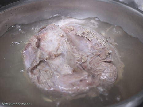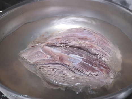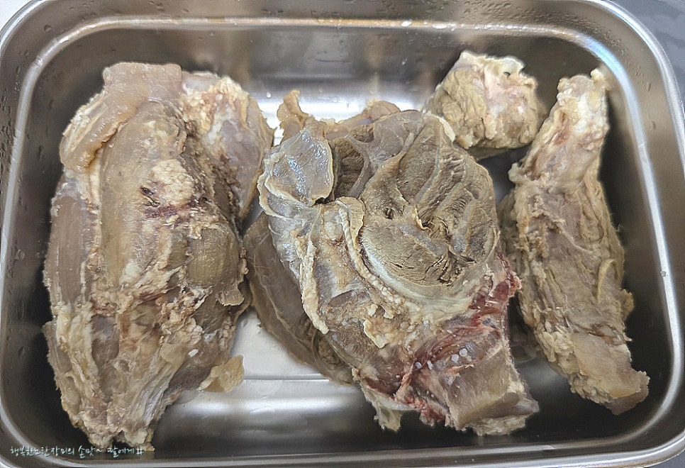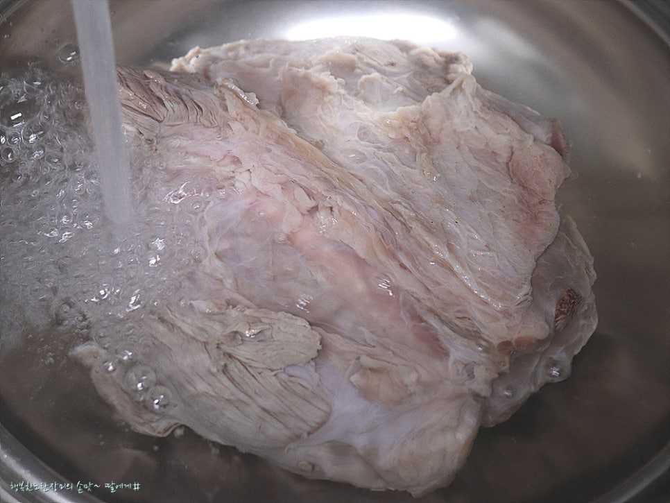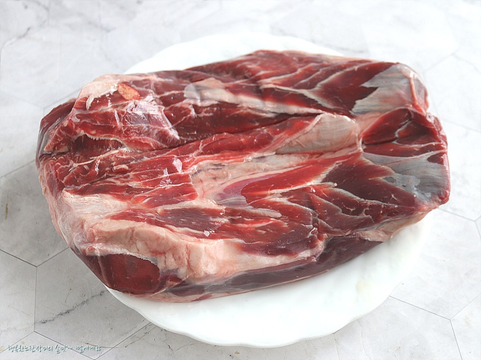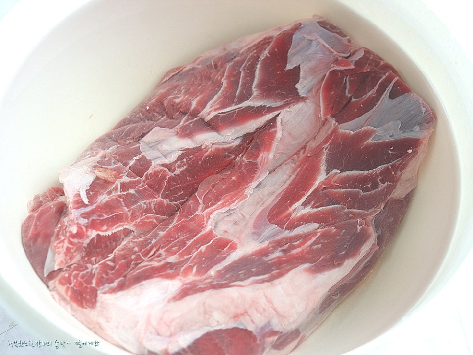 덩어리 고기라 물에 담가서 핏물을 빼주고