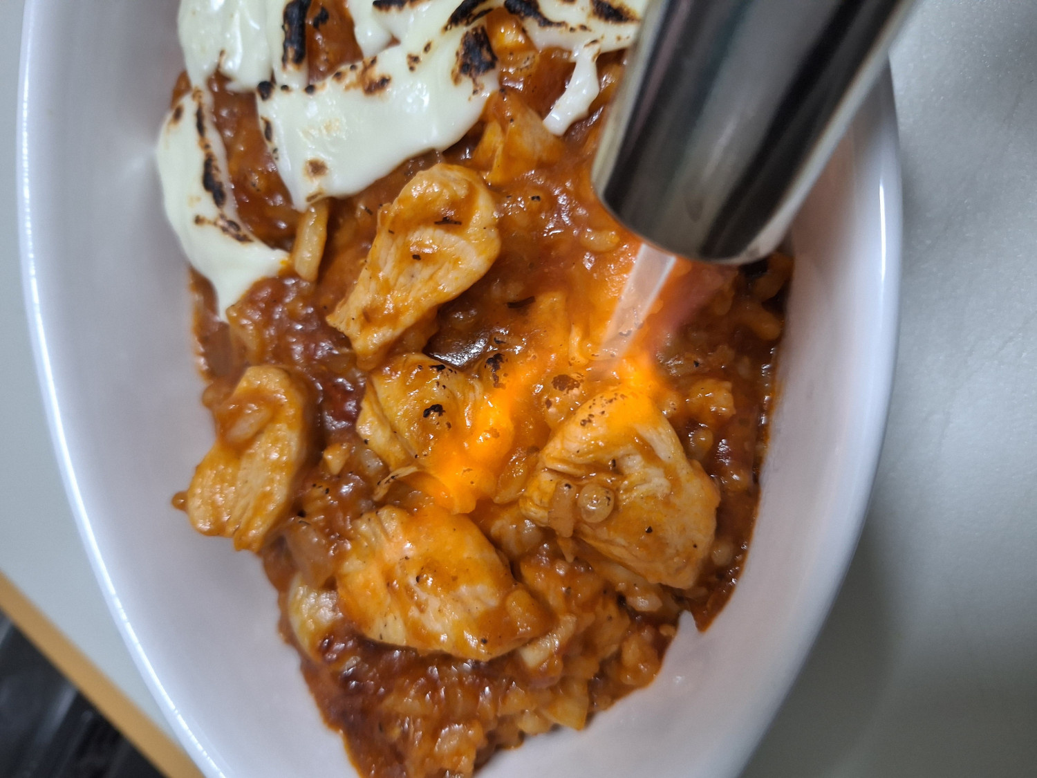 리조또와 고기도 토치로 살짝 그을리듯 구워줬습니다.