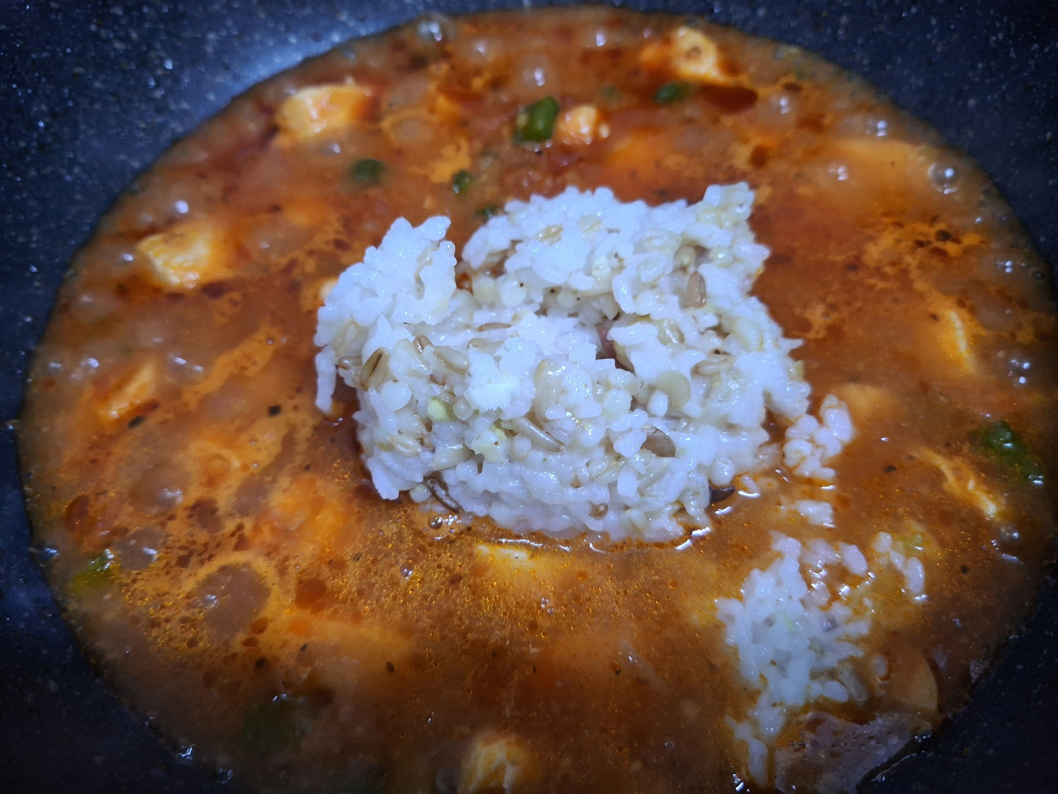 밥을 넣고 나서는 꼭 다 졸아들때까지 저어주세요.