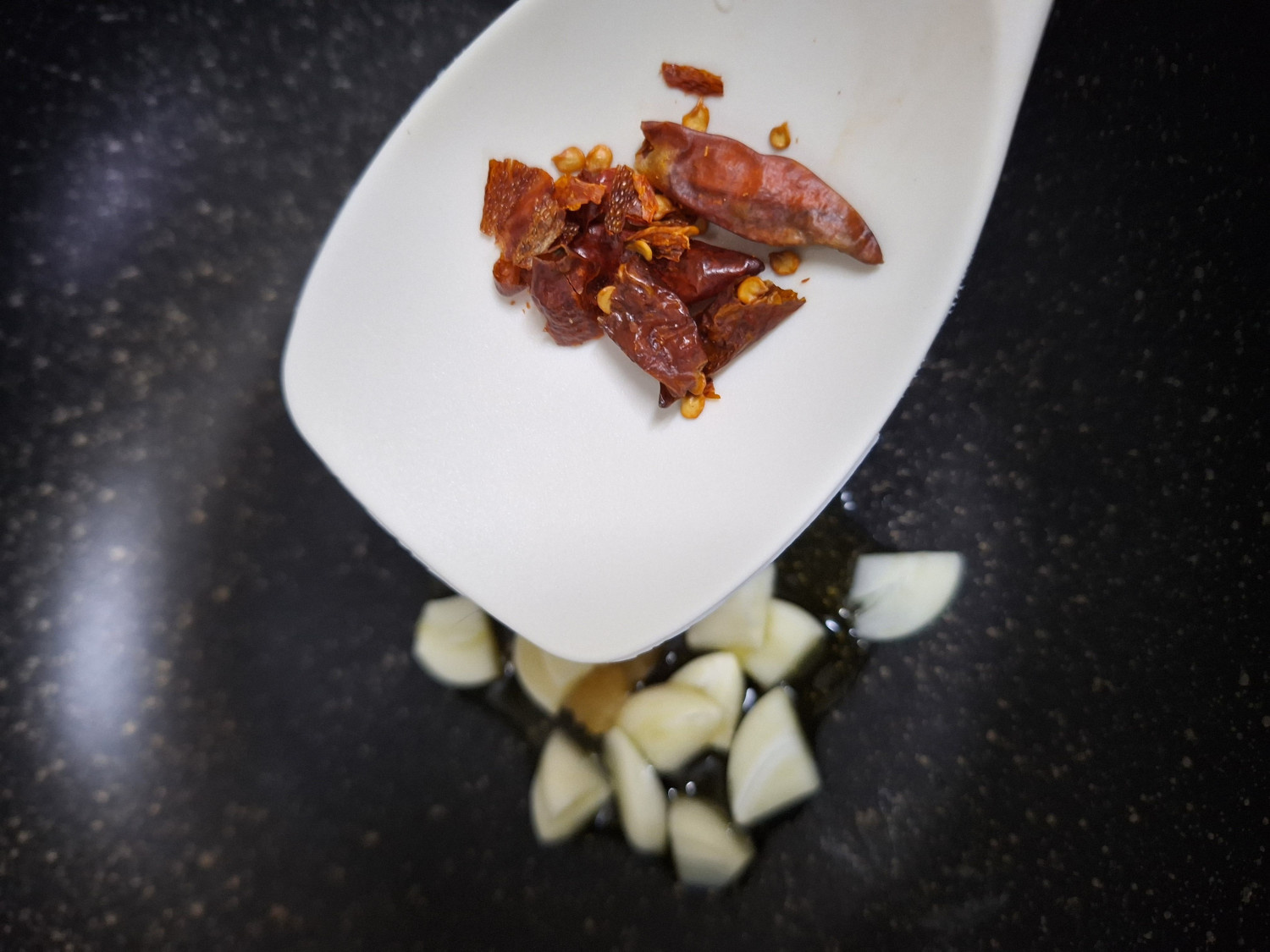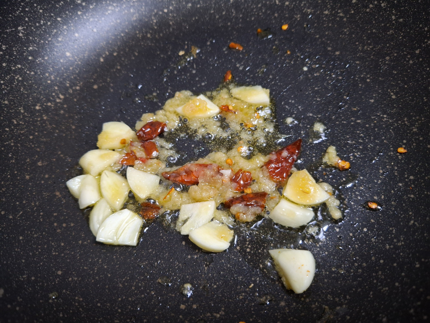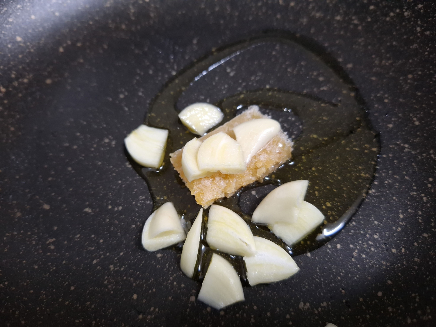 다진마늘 1/2숟갈과 썰어둔 통마늘과