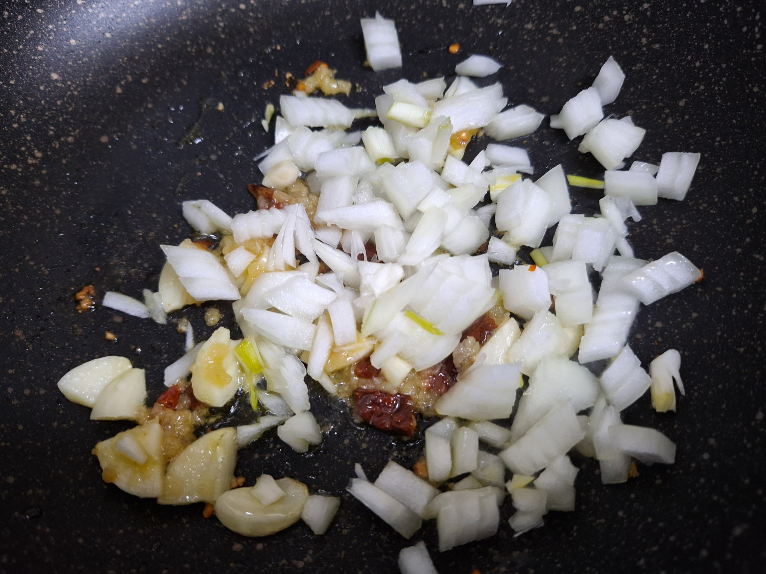 2분 후에 다진 양파를 넣고