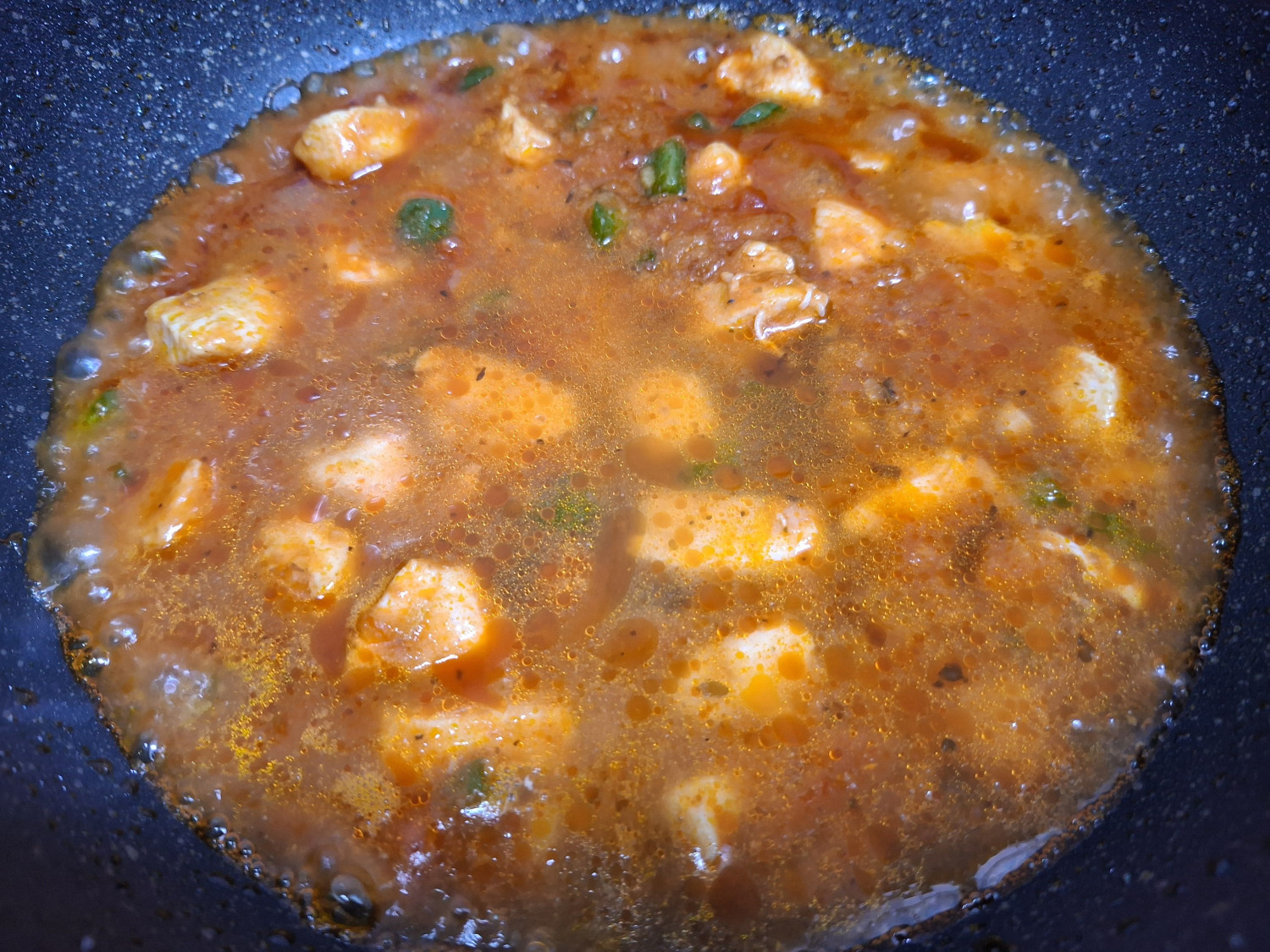 팬을 흔들었을때 찰랑이는 부분이 안보이고 자박하게 졸아들때까지