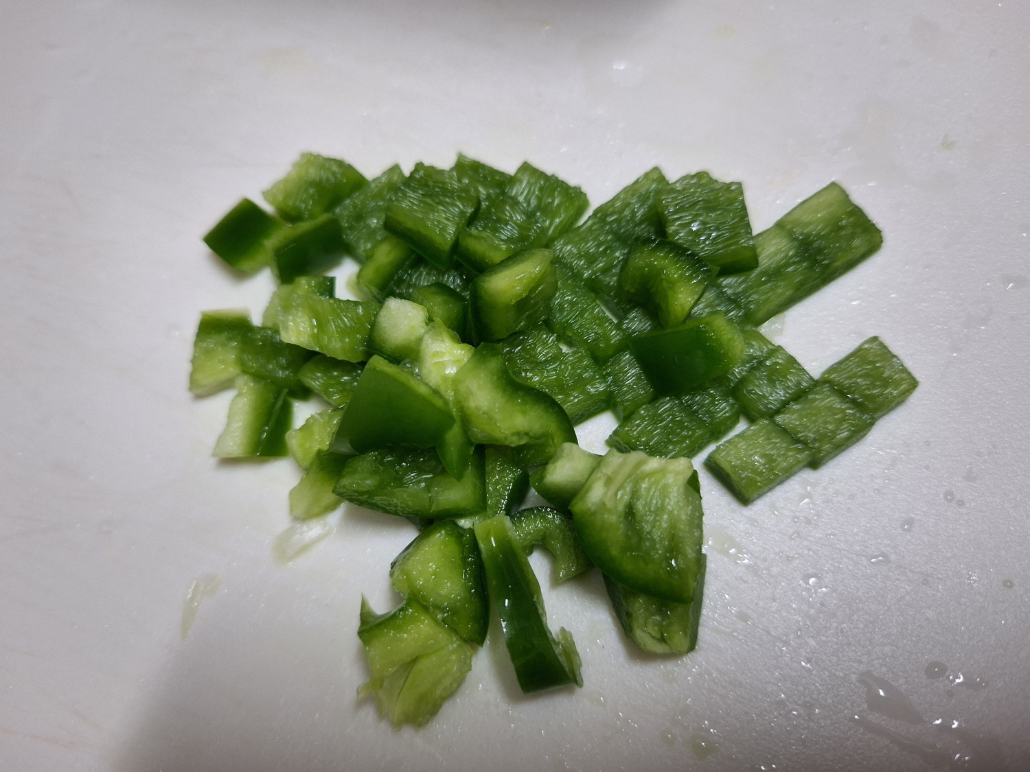 먼저 양파와 피망은 밥알과 비슷하게 다져줍니다.