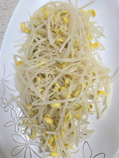 콩나물을 아삭하게 먹고 싶다면 돼지갈비와 함께 끓이지 마세요. 콩나물무침 할 때처럼 콩나물을 데쳐서 찬물에 씻어 준비해 주세요.