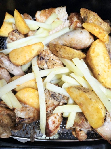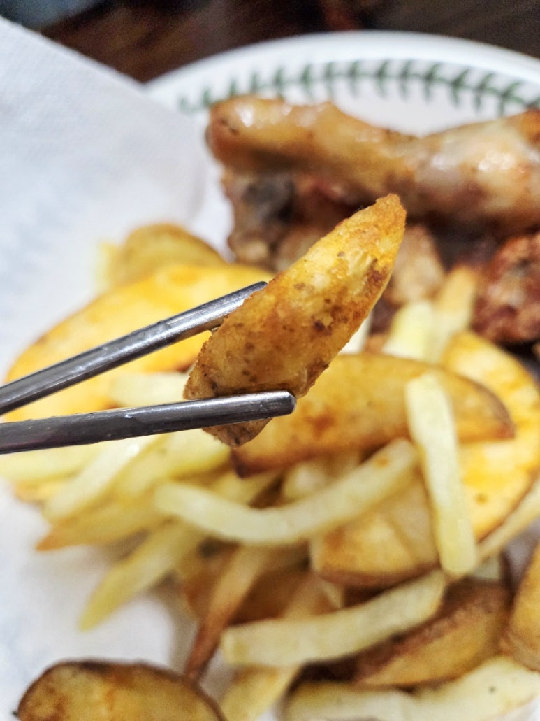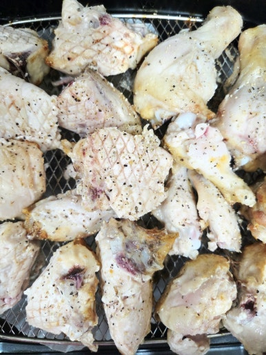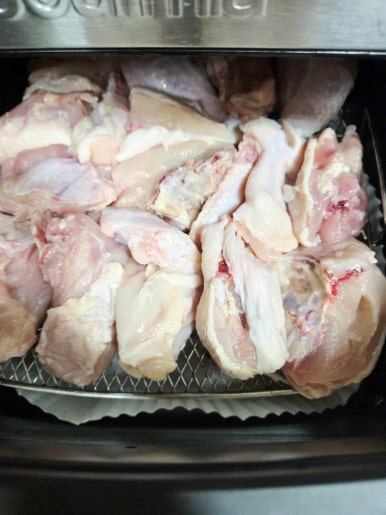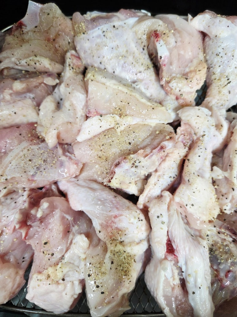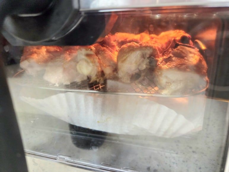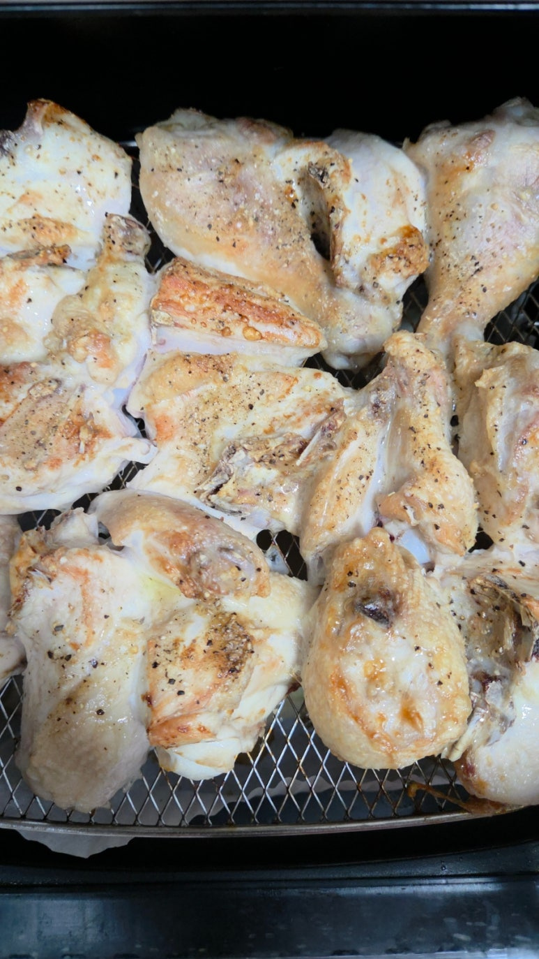 올리브유를 살짝 뿌려주면 다 껍질이 코팅되어 에어프라이어에서 구울 때 더욱 바삭하고 먹음직스러운 색을 내요. 퍽퍽 살도 좀 더 부드러워지고요.