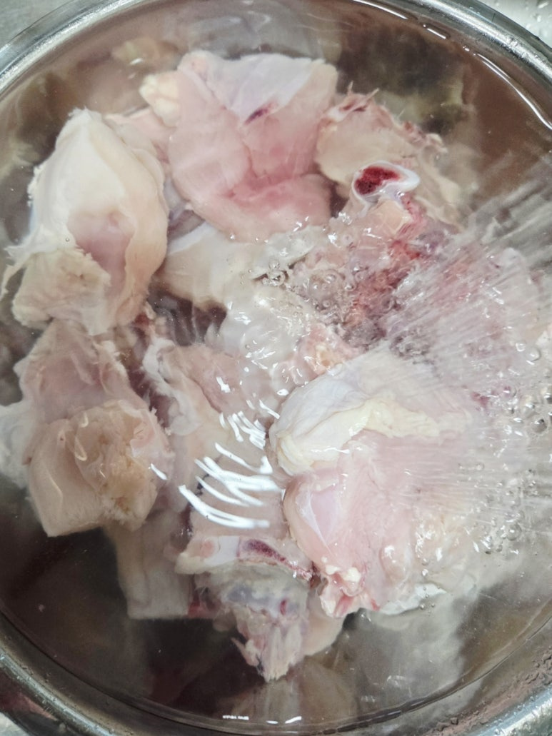 잡내를 없애기 위해 우유에 담가두기를 하셔도 되고요. 저는 오늘 사 온 싱싱한 닭이라 그냥 씻어주기만 했습니다.