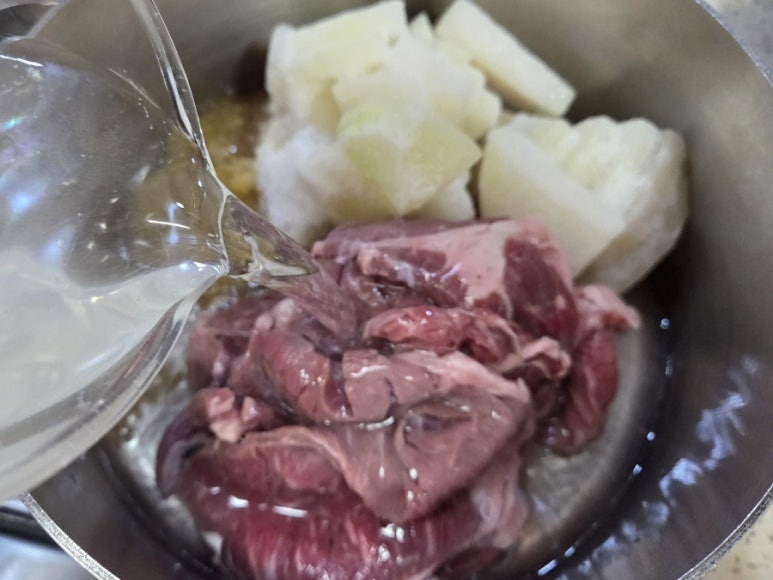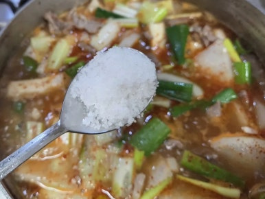 간을 약간 싱겁게 하고 중불로 줄여 뭉근하게 더 끓여줍니다.