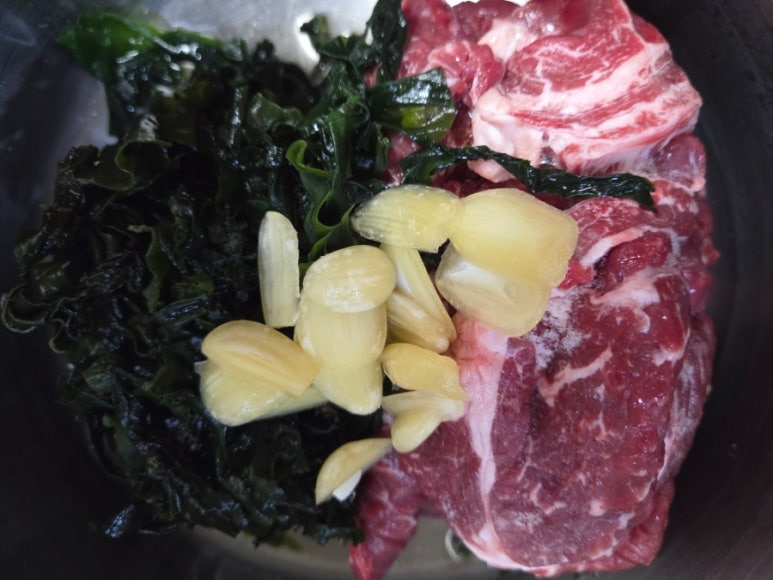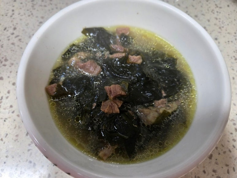 소고기 등심을 사용하는 이유 일반적으로 미역국에는 양지나 사태는 오래 끓여야 깊은 맛이 나는 부위를 사용하는데 등심을 쓰면 힘줄이나 근막이 많지 않아서 살코기가 완존 부드러워요. 오래 끓여주면 야들야들한 식감이 좋고요. 그리고 국물이 비교적 맑고 깔끔하게 우러나와요. 양지, 사태에 비해 비교적 빨리 익고 부드러워지기 때문에 초간단 레시피에 적절합니다. 꽃등심 같은 비싼 거 말고 할인하는 저렴이 사용