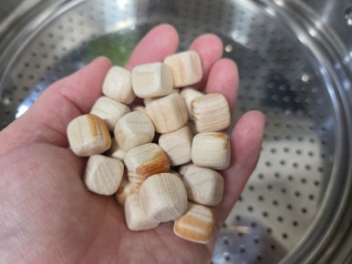 이렇게 하면 편백 찜 요리 하는데 있어 가장 효과적이고 위생적인 방법 중 하나라고 생각해요. 끓은 물의 수증기가 편백 큐브를 통과하며 피톤치드 향을 머금고 올라가, 음식을 더욱 풍미있게 만들어 줘요. 편백 큐브가 음식 재료가 직접 닿지 않아, 아이들 장난감용 큐브를 깨끗하게 세척했더라도 혹시 모를 잔여 오염 물질이 음식에 묻을 걱정이 없어요. 편백 큐브를 사용할 때 주의할 점 여러 번 사용하지 말고 1회용으로만 사용하기 장기간 반복 사용 X 공업용 X 방부처리 된거 X diy용 원목 X 공예용 X 향기칩 디퓨저용 X 코팅, 오일 마감된거 X 출처 불분명 X 아로마용 X