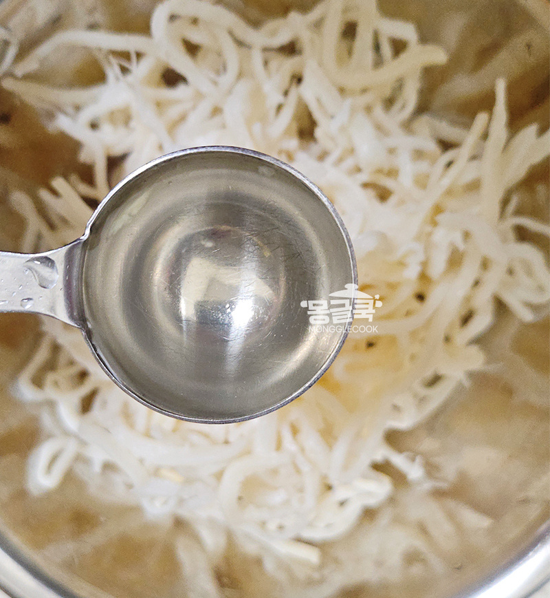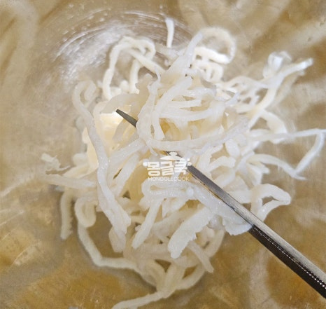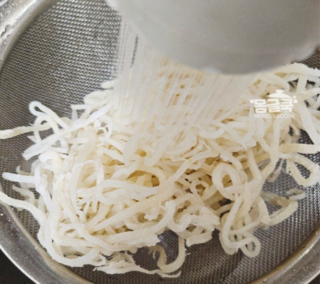 이 과정은 불순물을 제거하고 적당한 수분을 더해 식감이 부드러워지는 효과가 있으니 꼭 해주세요.