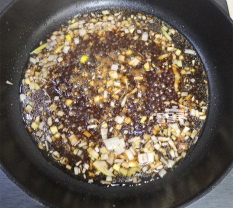 팬에 진간장, 설탕, 올리고당, 다진 마늘, 물, 식용유를 모두 넣어주세요.