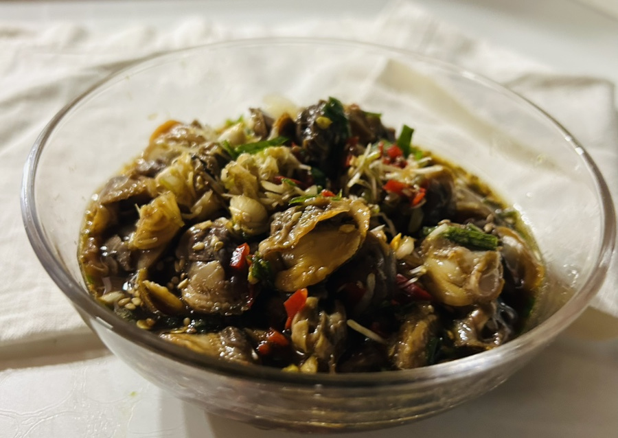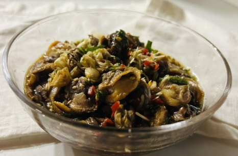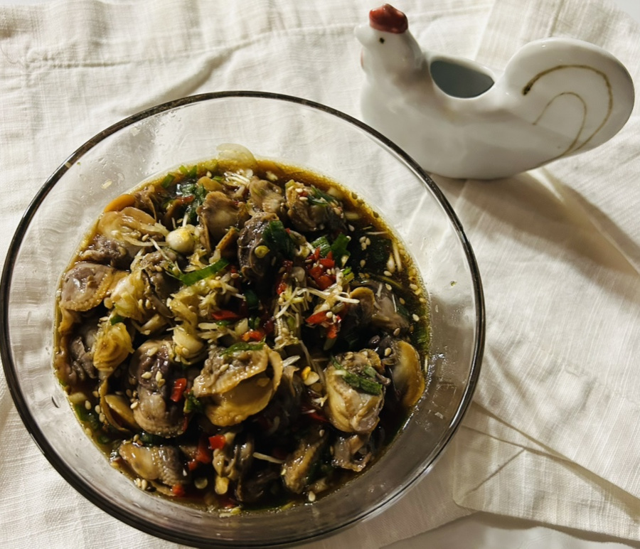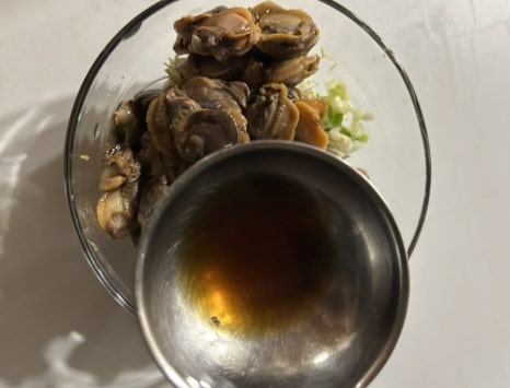 꼬막을 삶아서 알맹이만 모아 놓고 달래 청양고추 부추 등을 넣고 갖은 양념을 넣고 만드는 양념간장인데 꼬막을 삶은 물과 양조간장과 같은 양의 물을 넣는 게 포인트더라구요.