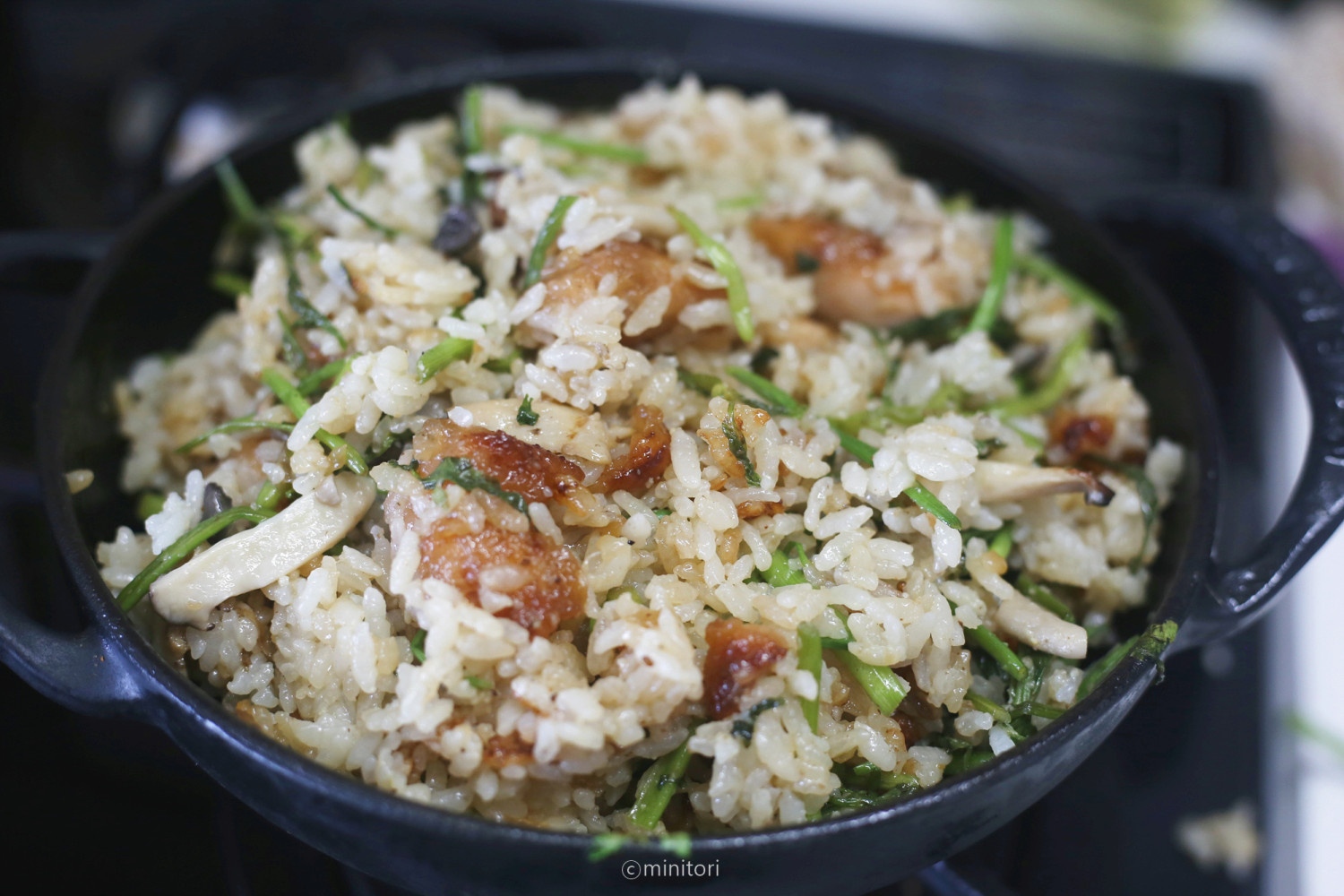 갓 지은 밥이라 밥알에 윤기가 돌고 닭고기는 달콤짭쪼름 하면서도 부드럽고 미나리는 향긋하면서도 아삭한 식감을 주고 그리고 마지막에 뿌린 들깨가루도 정말 킥인것 같아요. 들깨가루를 넣었더니 독특하면서도 맛있더라구요ㅎ