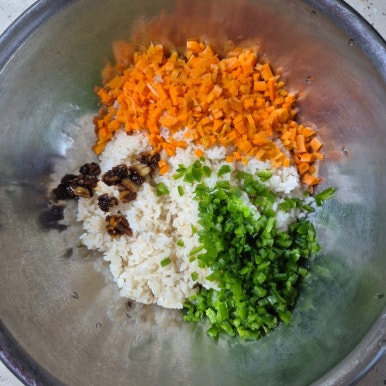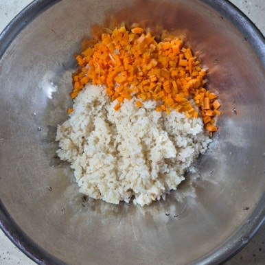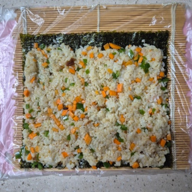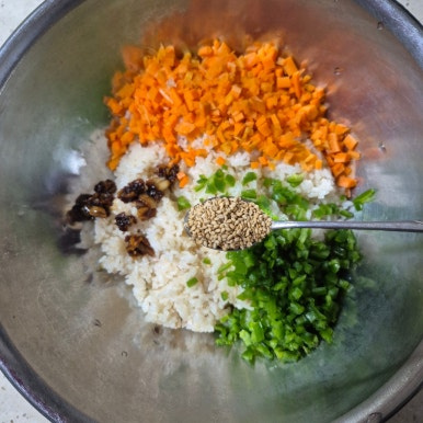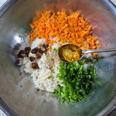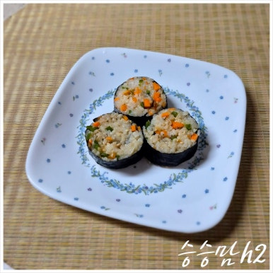 밥 1공기 반, 당근 20g, 청양고추 2개, 통깨 1작은술, 참기름 1큰술